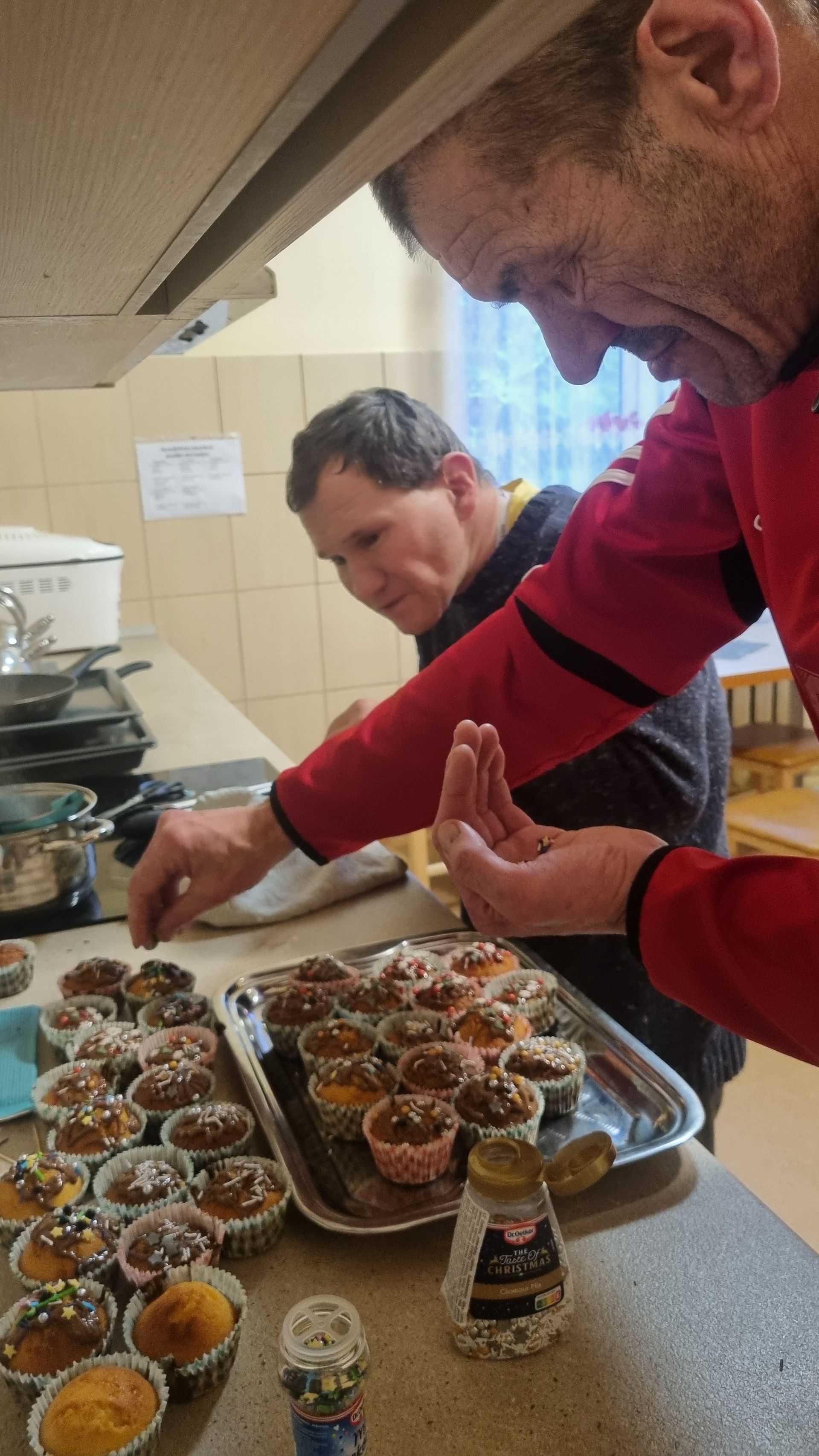 Gruodžio 10 dieną globos namuose vyko edukacija, kurios metu gyventojai ruošė, maišė tešlą ir nekantraudami laukė kol iškeps jų Kalėdiniai keksiukai, vėliau juos puošė, dekoravo ir džiaugėsi rezultatu. Pasklidęs Kalėdinių keksiukų kvapas priminė apie artėjančias metų šventes.