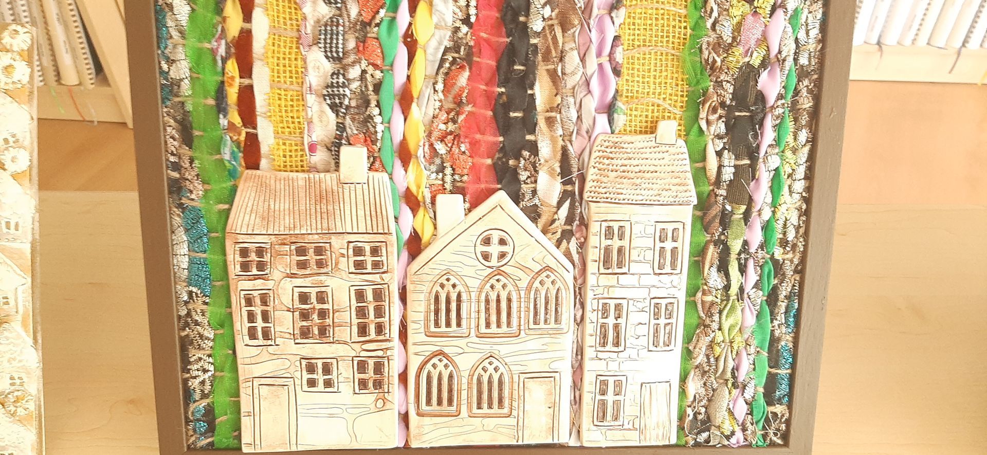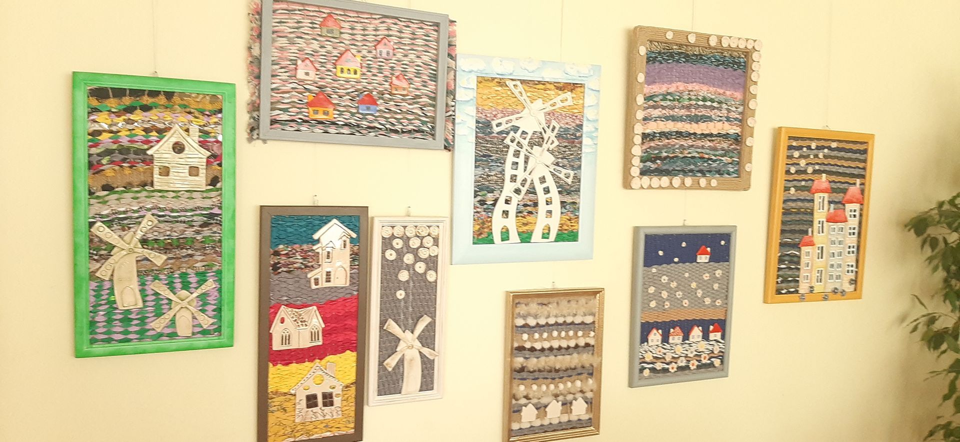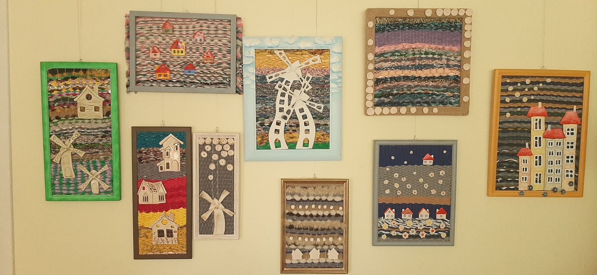Kiekvienas kūrinys – unikalus, sukurtas iš antrinių žaliavų: senų paveikslų rėmelių, audinių atraižų, siūlų, virvių. Tokios medžiagos ne tik skatina tvarų vartojimą, bet ir suteikia paveikslams išskirtinę tekstūrą bei gyvybingumą. Keramikos detalės papildė kūrinius spalvine ir faktūrine įvairove, sustiprindamos meninę išraišką ir skatindamos taktilinį pažinimą.